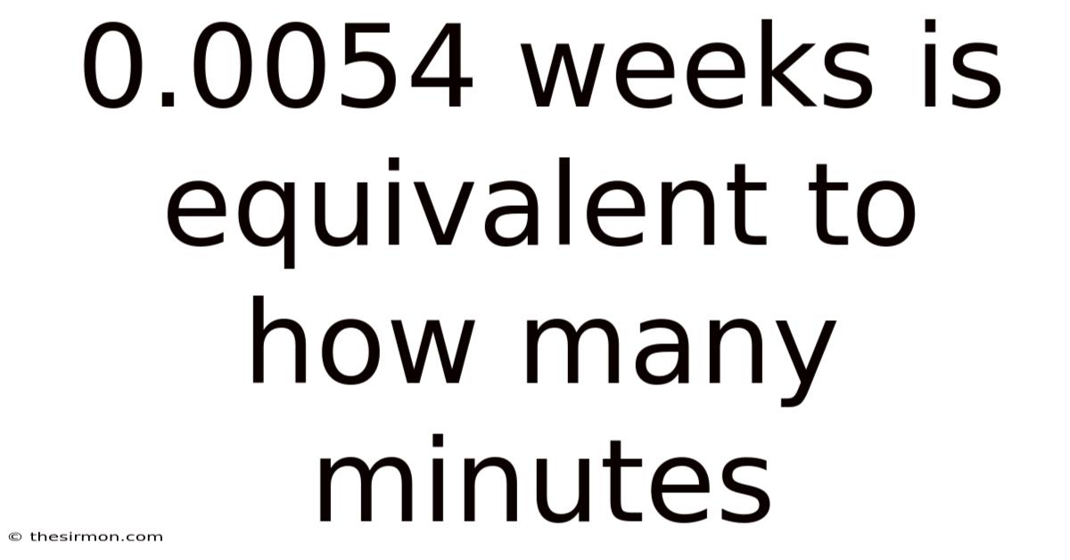 Now, to find out how many minutes are in 0.On the flip side, 0054 weeks, we begin by calculating the total number of hours in that time frame. Since we know that one week equals 168 minutes, we can multiply this value by the number of weeks we are considering. Even so, in this case, we are focusing on a very small fraction of a week It's one of those things that adds up..
