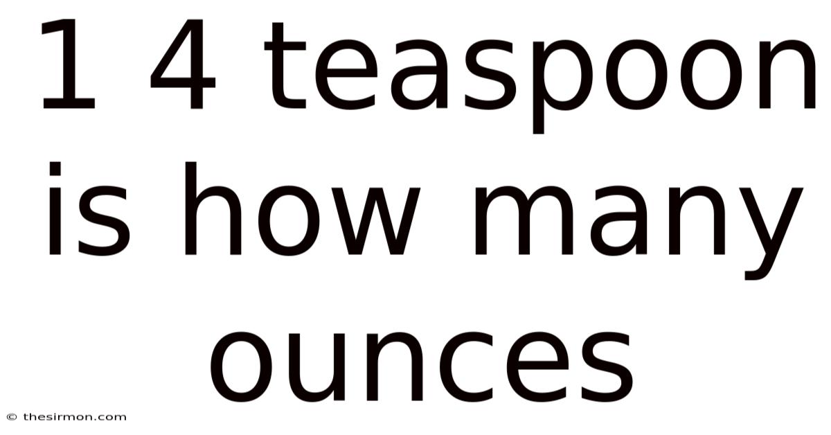 1 4 teaspoon is how many ounces – a question that pops up in kitchens, labs, and DIY projects alike. Whether you’re scaling a recipe, preparing a scientific experiment, or measuring medication, knowing the exact volume conversion between teaspoons and ounces can save time and prevent costly errors. This article breaks down the conversion process, explains the underlying science, and equips you with practical tools to handle similar measurements confidently The details matter here. Turns out it matters..