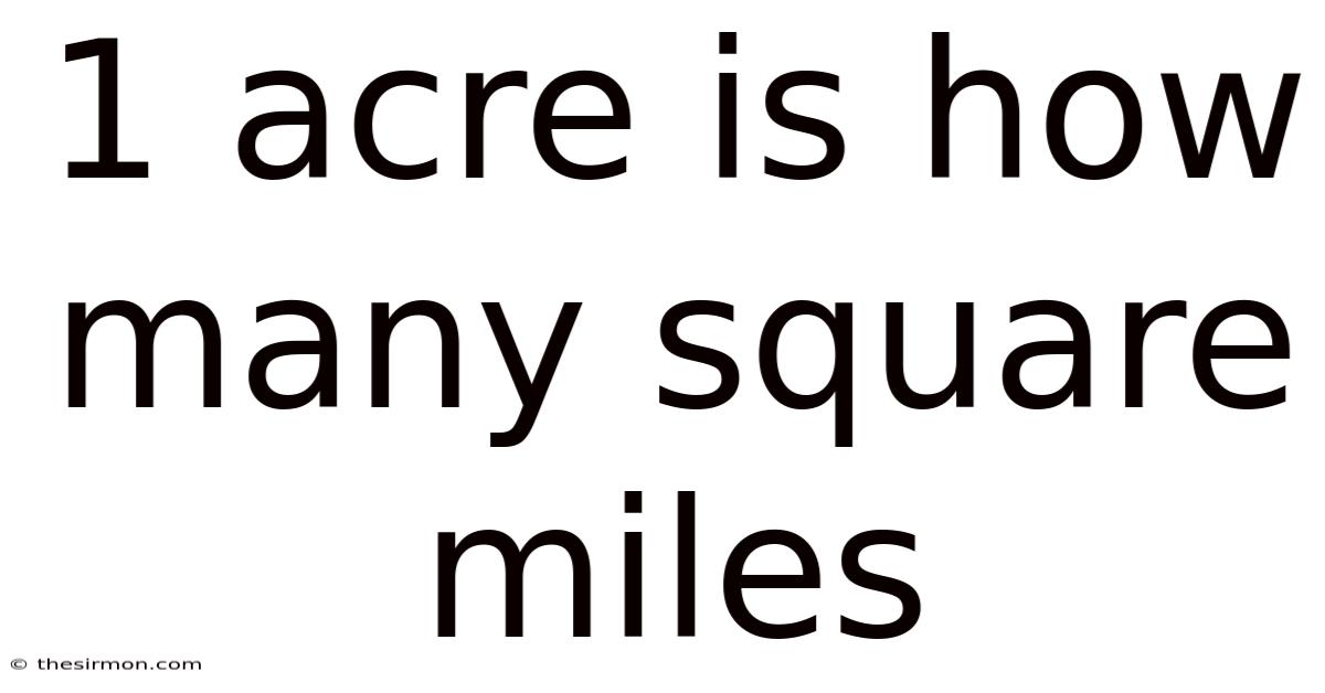 To wrap this up, understanding the relationship between acres and square miles is crucial for anyone involved in land management or planning. Even so, by using the conversion factor of 1 acre = 0. 0015625 square miles, you can easily convert between these two units and accurately measure and compare the size of different land plots. This knowledge is essential for making informed decisions about land use and management, and it can help you achieve your goals more effectively Worth keeping that in mind..