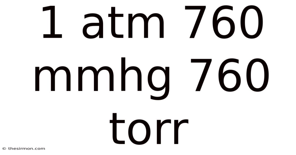 The relationship between 1 atm, 760 mmHg, and 760 torr is a fundamental concept in pressure measurement. Which means understanding these units and their interconnections is crucial for students and professionals in various scientific and technical fields. Whether you're studying gas laws in chemistry, measuring blood pressure in medicine, or working with vacuum systems in engineering, a solid grasp of these pressure units will serve you well in your academic and professional pursuits.