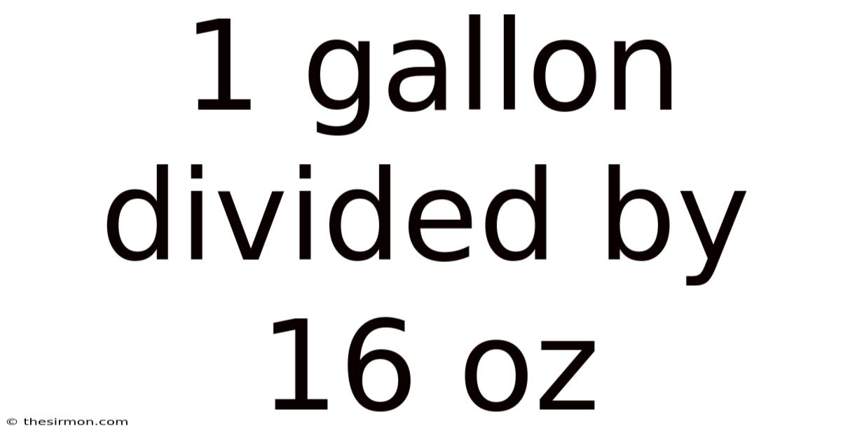 This means 1 gallon divided by 16 oz equals 8. Still, in other words, a gallon can be divided into 8 equal parts of 16 ounces each. This conversion is particularly useful when dealing with large quantities of liquid, such as in bulk cooking, brewing, or industrial processes That's the part that actually makes a difference. Which is the point..