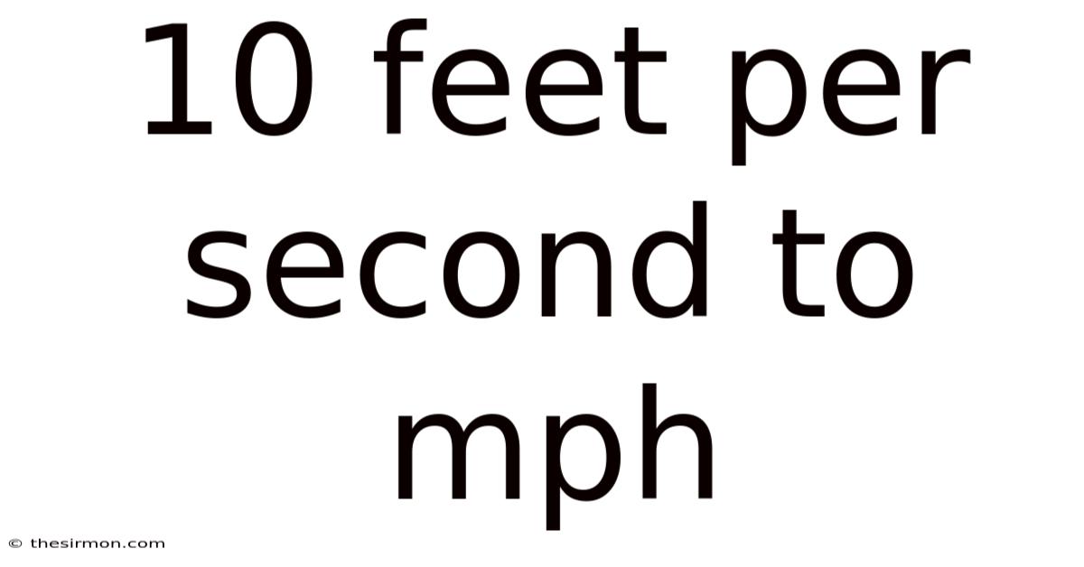 To convert 10 feet per second to miles per hour, we need to understand the relationship between these two units of speed. Feet per second (ft/s) is a unit of speed commonly used in the United States, while miles per hour (mph) is more widely used in everyday contexts, especially for vehicles and road speeds.