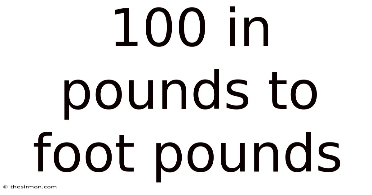 When people search for 100 in pounds to foot pounds, they are often encountering a common point of confusion in physics and engineering: the difference between force (or mass) and torque. Because of that, while both use the word "pound," they describe two entirely different physical concepts. To convert 100 pounds to foot-pounds, you aren't simply changing a unit; you are moving from a linear measurement of weight or force to a rotational measurement of twisting power.