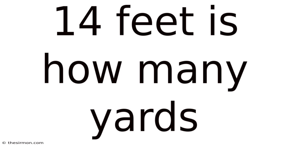 To keep it short, converting 14 feet to yards is a straightforward process that underscores the importance of understanding measurement systems. In real terms, 67 yards. By dividing 14 by 3, we find that 14 feet equals 4 yards and 2 feet, or approximately 4.This knowledge is not only useful for academic purposes but also for a wide range of practical applications, from home improvement projects to sports and beyond Small thing, real impact. Took long enough..