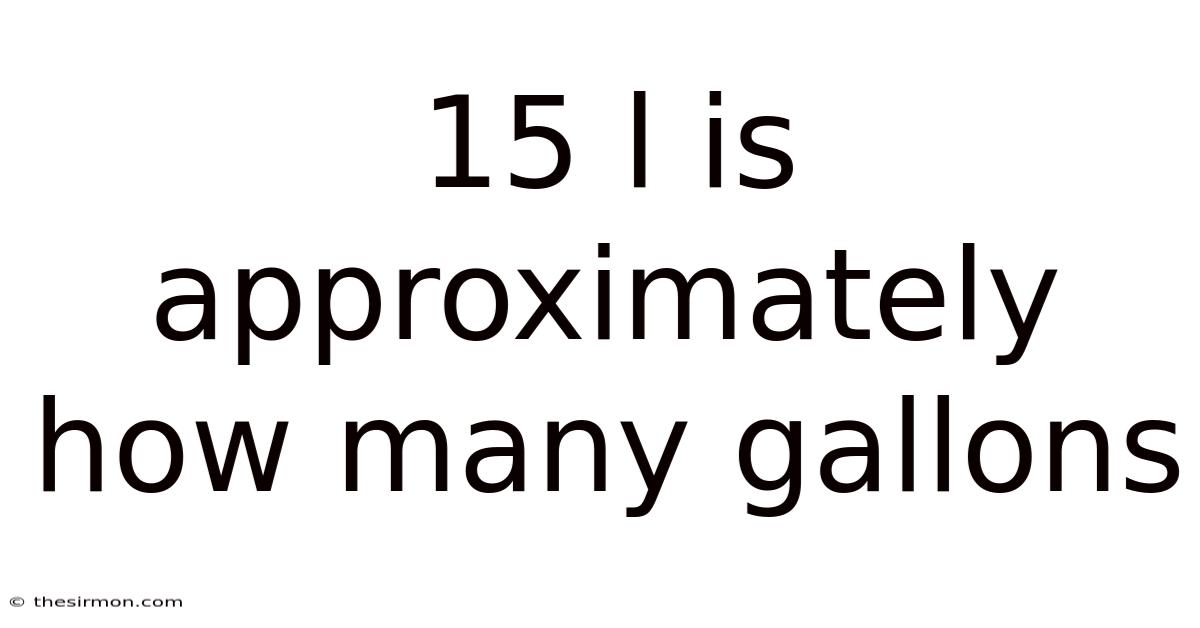 Thus, the answer to “15 l is approximately how many gallons?96 US gallons** (or roughly 3.” is **about 3.30 imperial gallons).