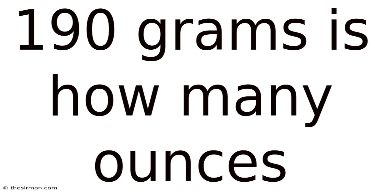 To address the core question directly: 190 grams is equal to approximately 6.702 ounces. This figure is derived from the internationally recognized conversion factor where one avoirdupois ounce equals exactly 28.349523125 grams. Dividing 190 by 28.3495 yields 6.702335, which rounds to 6.70 ounces for standard culinary, commercial, or personal tracking purposes.