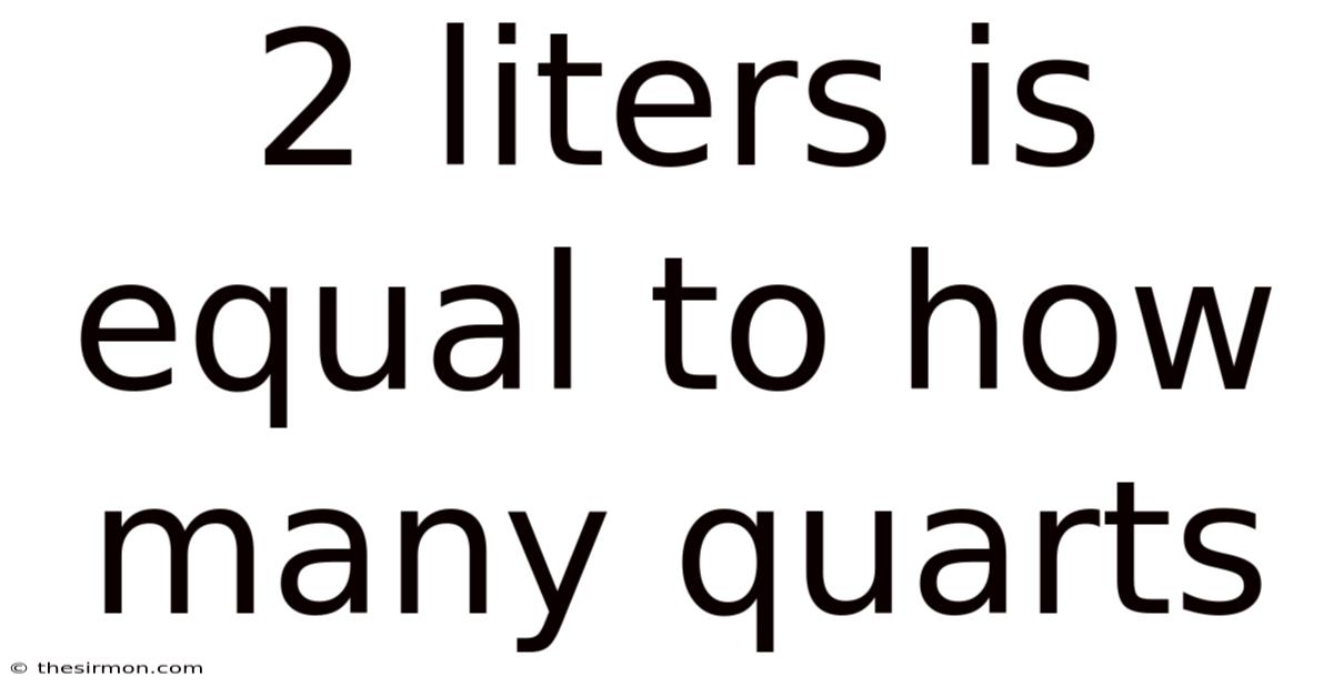 - Is 2 liters equal to 2 quarts? No. 2 liters is approximately 2.11 US quarts, slightly more than 2 quarts.