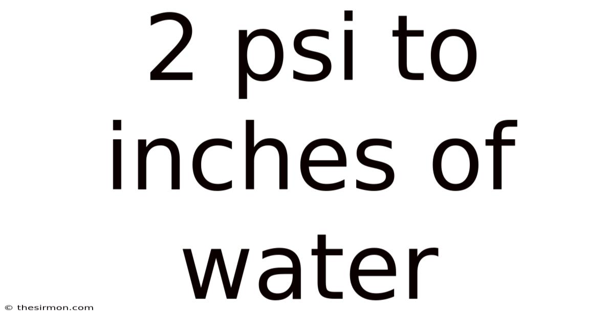 Rounded to two decimal places, 2 psi equals approximately 55.42 inches of water.