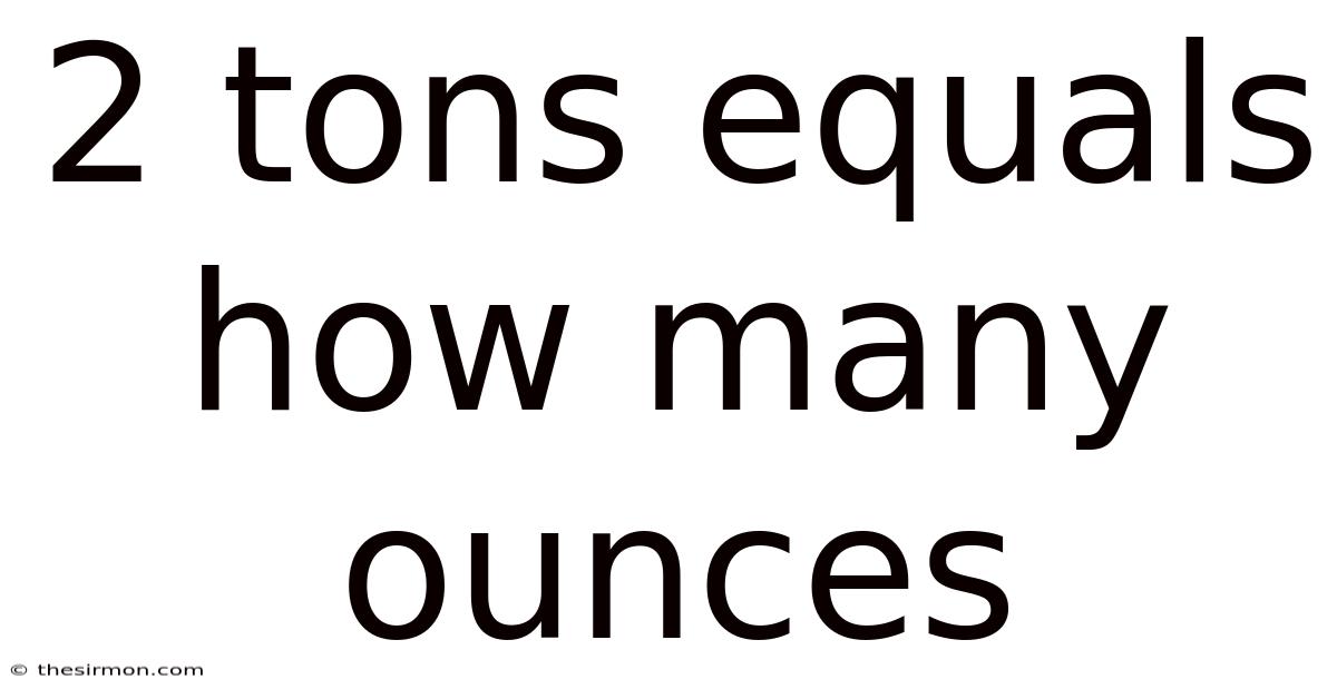 Simply put, 2 tons equals 64,000 ounces when using the short ton measurement standard in the United States. This conversion is more than just a mathematical exercise; it has practical implications in industries ranging from shipping to manufacturing. By mastering these conversions, you can ensure accuracy in your work and avoid costly mistakes.