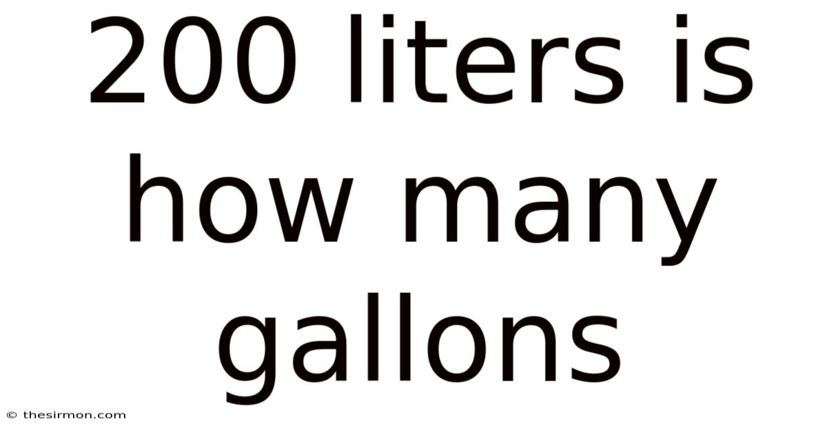 200 liters is how many gallons? This is a common question when dealing with different measurement systems, especially when comparing quantities used in countries like the United States (where gallons are standard) with those using the metric system (liters). Understanding this conversion is crucial for tasks ranging from cooking and fuel economy to scientific calculations and purchasing liquids. Let's break down exactly what 200 liters translates to in gallons and explore the context behind the numbers Still holds up..