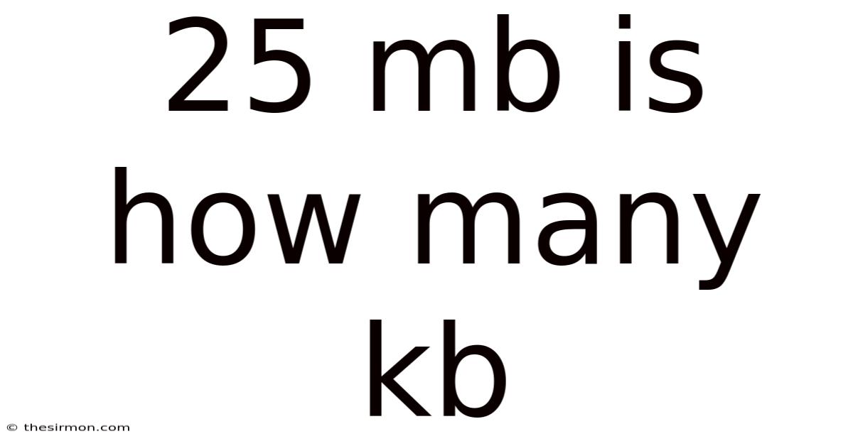 When you type 25 mb is how many kb into a search engine, the result you expect is a clear numeric answer accompanied by a brief explanation of the conversion process. This article serves that purpose: it delivers the exact calculation, clarifies the underlying standards, and equips you with the knowledge to convert any megabyte value to kilobytes without hesitation It's one of those things that adds up..