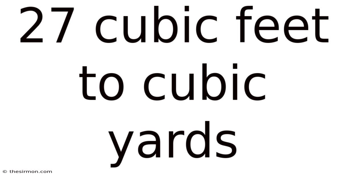 Volume measurement is a fundamental concept that touches nearly every practical aspect of our lives, from constructing a new patio to ordering gravel for a driveway or calculating the capacity of a moving truck. Now, among the most common units in the United States and other countries using the imperial system are the cubic foot and the cubic yard. A frequent and crucial conversion is understanding what 27 cubic feet represents in the larger unit of cubic yards. This conversion is not just a mathematical exercise; it is a practical skill that prevents costly errors, saves time, and ensures efficiency in countless projects. Mastering this simple relationship empowers you to confidently handle materials sold by the cubic yard, from concrete and soil to mulch and sand Turns out it matters..