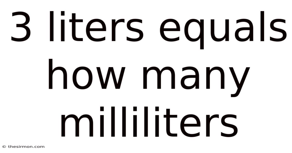 When you ask 3 liters equals how many milliliters, you are essentially asking to express a larger unit (liters) in a smaller unit (milliliters). The conversion factor is: