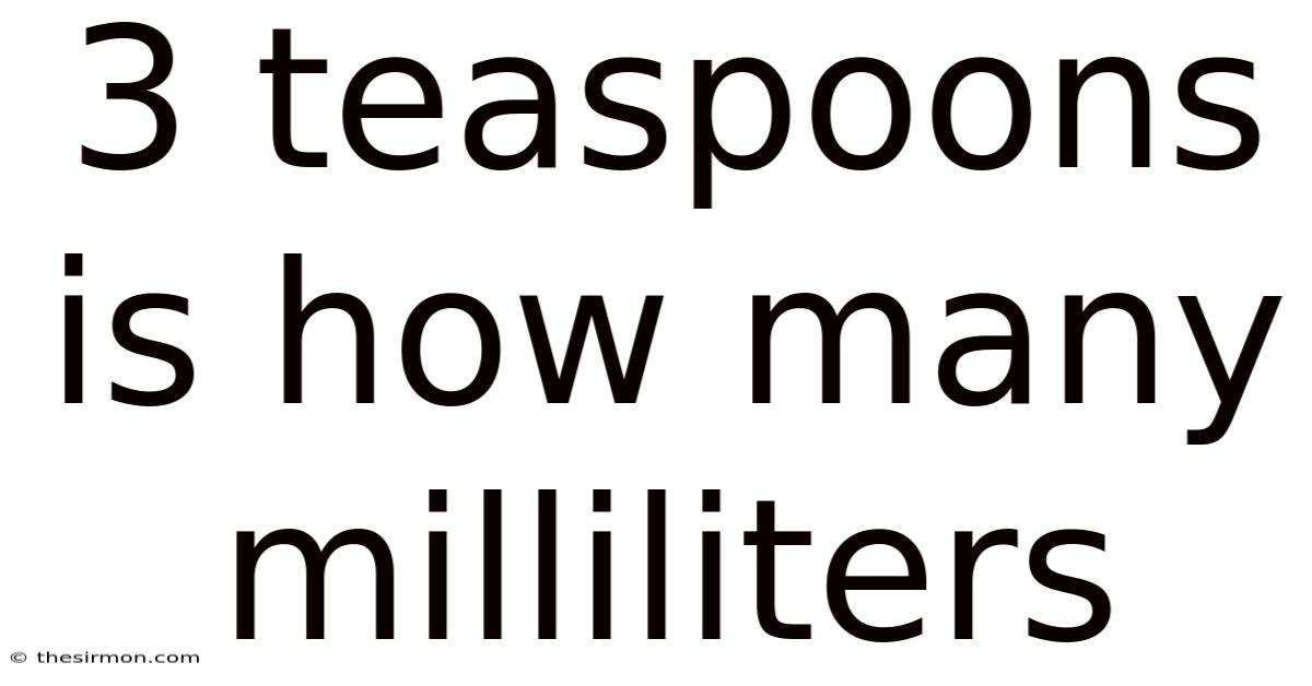 Put another way, 3 teaspoons is roughly 14.79 mL when calculated precisely. Even so, in most everyday scenarios—such as cooking or baking—this is often rounded to 15 mL for simplicity. In real terms, the rounded figure is widely accepted because the difference of 0. 21 mL is negligible in most culinary applications.