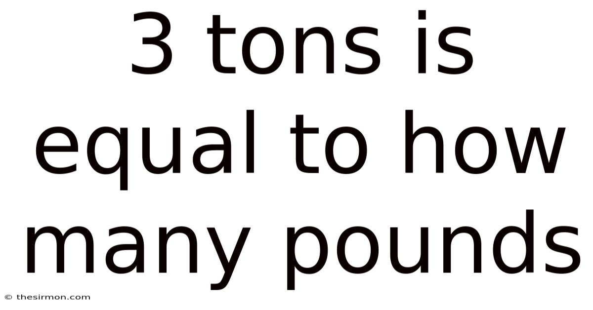 Understanding the conversion between tons and pounds is essential for anyone dealing with measurements in the real world. Whether you're working in construction, shipping, or everyday life, knowing how to transform units can save time and prevent mistakes. In practice, in this article, we will explore the relationship between tons and pounds, focusing on the specific question: *What does 3 tons equal in pounds? * By breaking down the process step by step, we aim to provide a clear and practical explanation that empowers you with this knowledge Easy to understand, harder to ignore. Which is the point..