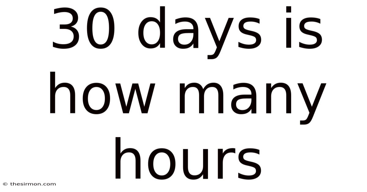 30 days is how many hours? Still, this seemingly simple question touches on fundamental concepts of time measurement and calculation. Practically speaking, understanding this conversion is crucial for planning projects, scheduling travel, managing work hours, or simply satisfying curiosity about the passage of time. Let's break down the exact number of hours contained within a thirty-day period and explore the reasoning behind it Not complicated — just consistent..