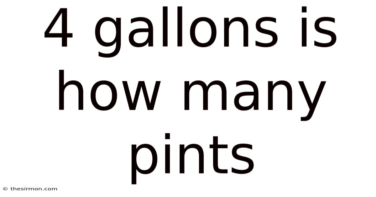 In the United States customary system, liquid measurements follow a clear hierarchy. This structure links cups, pints, quarts, and gallons in consistent ratios. Here's the thing — once you learn the pattern, converting between units becomes intuitive rather than a memorization exercise. The question of 4 gallons is how many pints is an excellent example of how one simple calculation can access broader measurement fluency Nothing fancy..