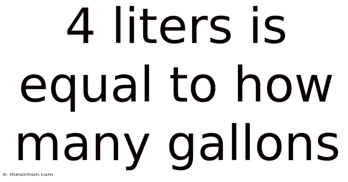Let’s walk through the calculation in detail. The conversion factor from liters to gallons is approximately 0.On the flip side, 264 quarts, but for simplicity, we often use the direct ratio of 3. So 785 liters per gallon. Multiplying 4 liters by this ratio gives us a clearer picture. Here's the thing — when we do the math, we find that 4 liters is approximately 1. 06 gallons. So in practice, 4 liters is a bit more than a half-gallon, which can be helpful for understanding the scale of the measurement.