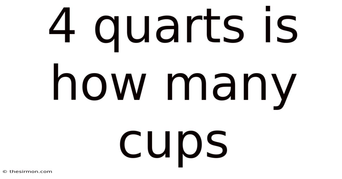 When it comes to cooking, baking, or even just following a recipe, understanding measurement conversions is essential. In practice, " The answer is straightforward: 4 quarts equals 16 cups. In practice, one common question that arises in the kitchen is "4 quarts is how many cups? This conversion is fundamental in many recipes, especially when scaling up or down portions, and understanding this relationship can make your time in the kitchen much smoother and more efficient The details matter here..