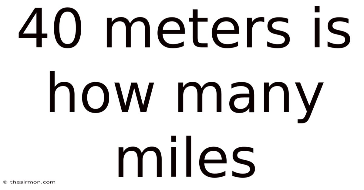 Understanding the relationship between meters and miles is a fundamental skill that bridges the gap between metric and imperial measurements. One common question arises: How many miles are in 40 meters? This query is not just about numbers—it's about understanding the practical implications of unit conversion and its relevance in daily life. For many people, especially those navigating international travel, education, or everyday tasks, knowing how to convert units can make a significant difference. By exploring this topic in depth, we can uncover the importance of this conversion and how it affects various aspects of our world Worth keeping that in mind..