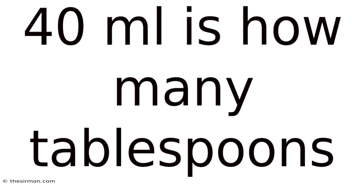 For practical purposes, many people round this to 2.75 tablespoons to account for minor discrepancies. 67). Now, 5 to 2. tablespoon, 40 ml will typically translate to 2 and two-thirds tablespoons (2.If you’re using a standard U.S. This approximation works well for most recipes, but it’s worth noting that precision matters in baking, where even small deviations can affect the final product.