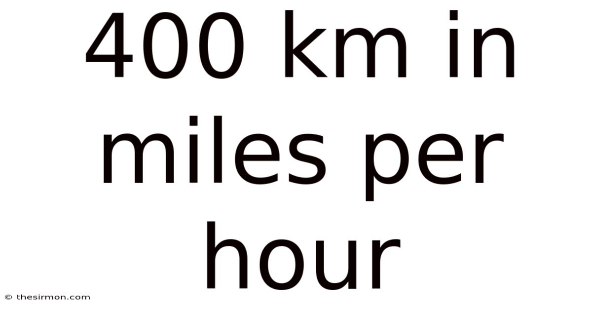 To keep it short, 400 kilometers per hour is equivalent to approximately 248.By remembering that 1 kilometer is about 0.This conversion is straightforward once you know the conversion factor, and it's a valuable skill for anyone dealing with international travel, vehicle performance, or speed comparisons. 55 miles per hour. 621371 miles, you can easily convert any speed from kilometers per hour to miles per hour, helping you better understand and communicate speeds across different measurement systems Not complicated — just consistent..