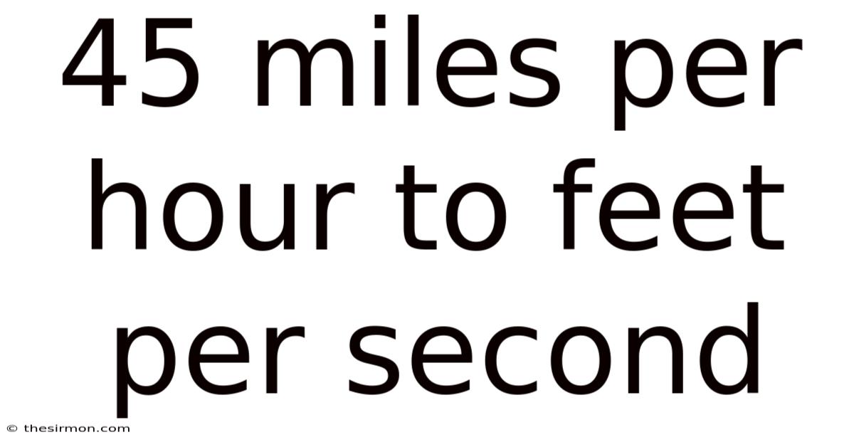 Converting 45 miles per hour to feet per second yields 66 ft/s, a straightforward yet powerful calculation that bridges two common units of speed. This simple conversion factor of 1.4667 (or the exact fraction 22/15) serves as a valuable tool across multiple disciplines, from athletic training to automotive engineering Most people skip this — try not to. Worth knowing..