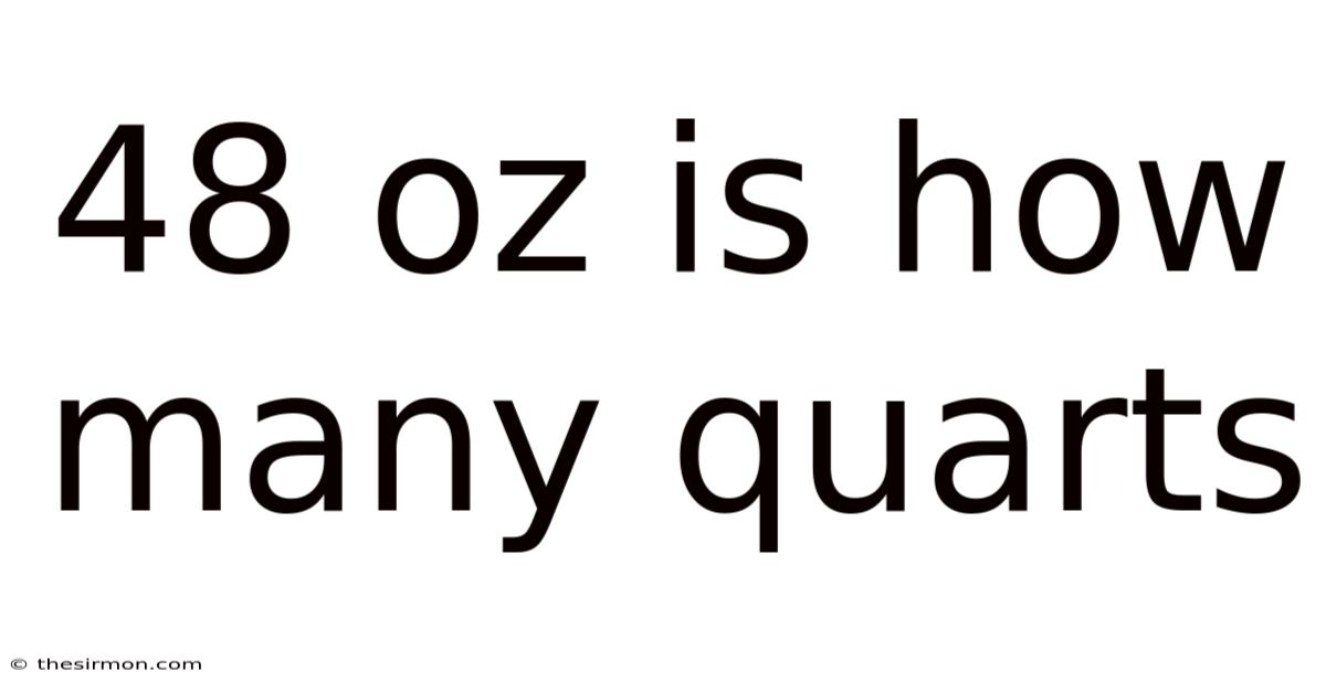 That's why, 48 fluid ounces equals 1.On the flip side, 5 quarts. In practice, this means that 48 oz is one and a half quarts. You might also express this as 1 quart and 16 fluid ounces, since 32 oz make a full quart and the remaining 16 oz are exactly half of a quart Which is the point..