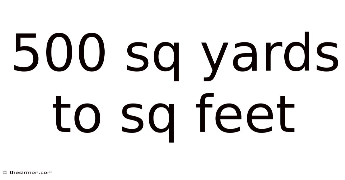 Thus, 500 sq yards to sq feet equals 4,500 square feet.