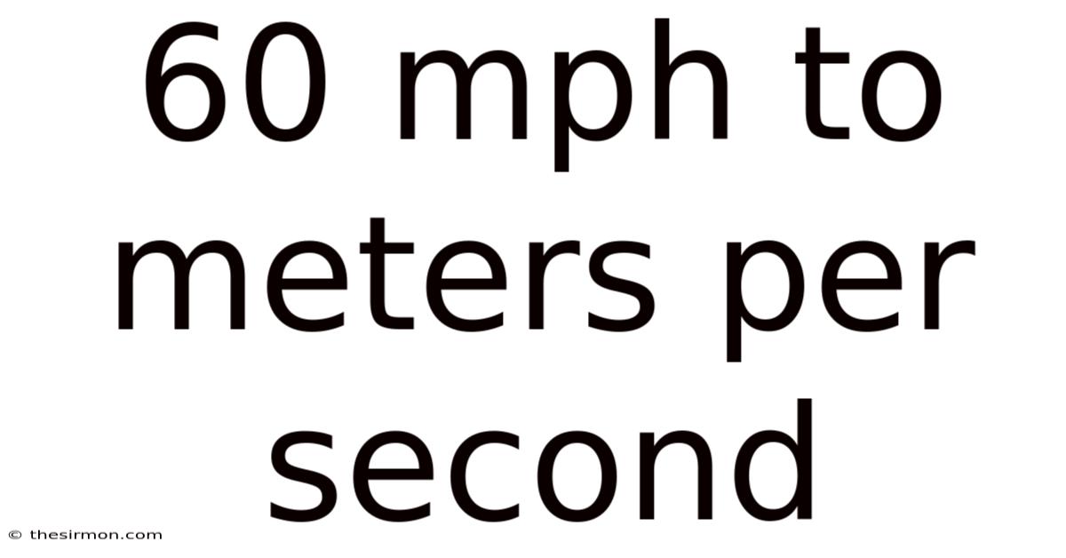 Result: 60 mph is exactly 26.8224 meters per second.