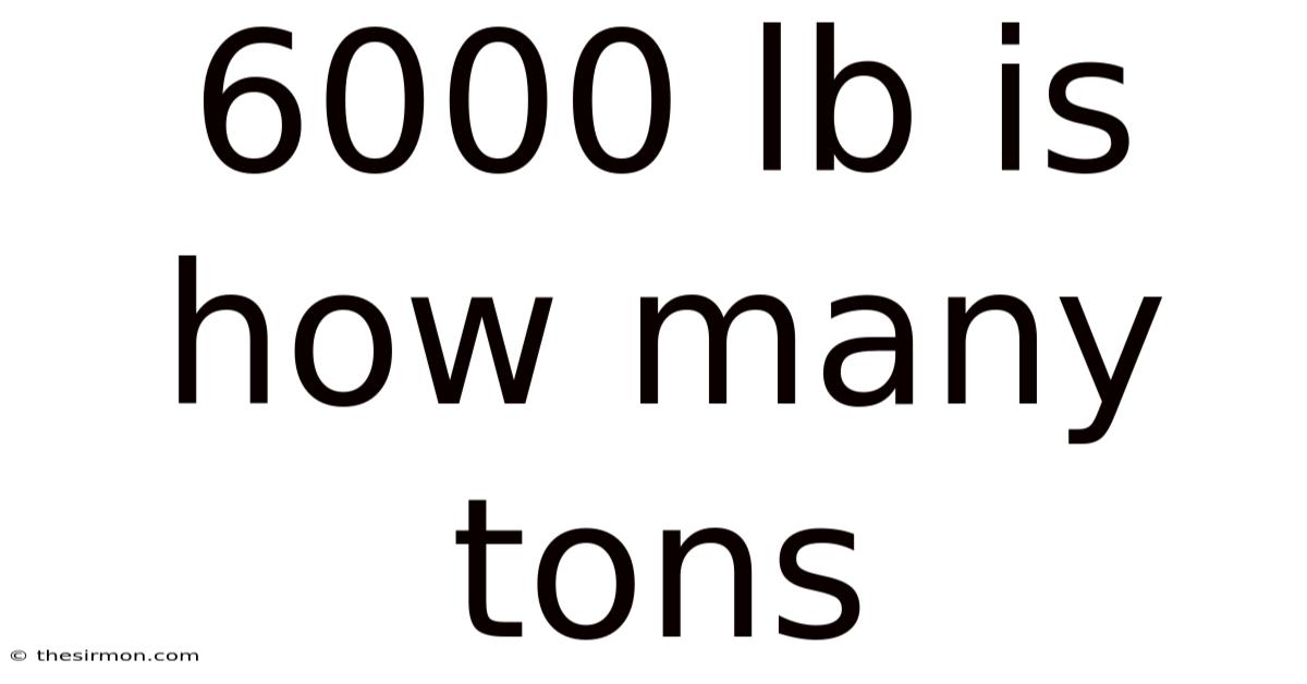 When you're dealing with weight measurements, it's essential to understand the conversion between pounds and tons. Whether you're working on a construction project, managing a shipment, or simply curious about the scale of different weights, knowing how to convert pounds to tons can be incredibly useful. In this article, we'll dive into the specifics of converting 6000 pounds to tons, providing you with a clear understanding of the process and the results And that's really what it comes down to..