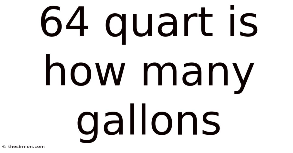 64 quart is how many gallons? Understanding this conversion is essential for anyone who works with liquids in the kitchen, laboratory, or on a construction site. While the numbers may seem small, a clear grasp of the relationship between quarts and gallons can prevent costly mistakes, save time, and improve accuracy in everyday tasks. This article explains the exact conversion, walks through practical examples, explores the historical background of the units, and answers the most common questions about quart‑to‑gallon calculations Worth keeping that in mind..