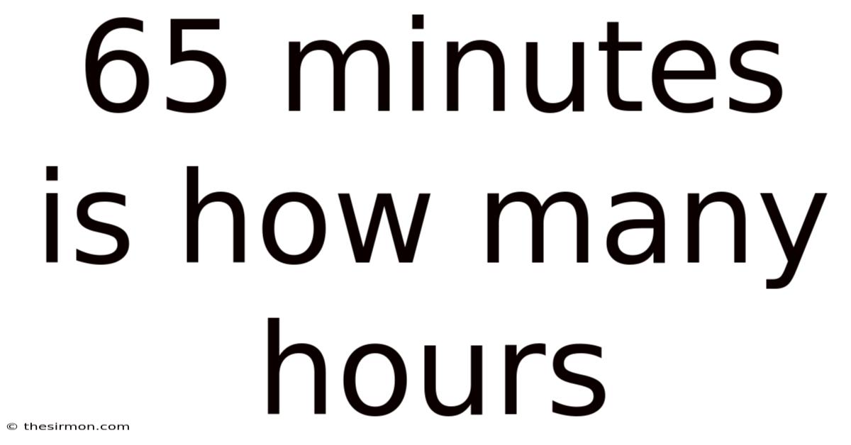 Understanding how to convert 65 minutes to hours is a fundamental skill with wide-ranging applications. Whether you’re managing work hours, planning travel, or following a recipe, knowing that 65 minutes equals 1 hour and 5 minutes (or 1.0833 hours) ensures accuracy and efficiency. By mastering the simple division process and avoiding common mistakes, you can confidently handle time conversions in any context. With the help of modern tools and resources, this task becomes even more accessible, making it easier to handle the complexities of time in daily life That's the part that actually makes a difference. Nothing fancy..