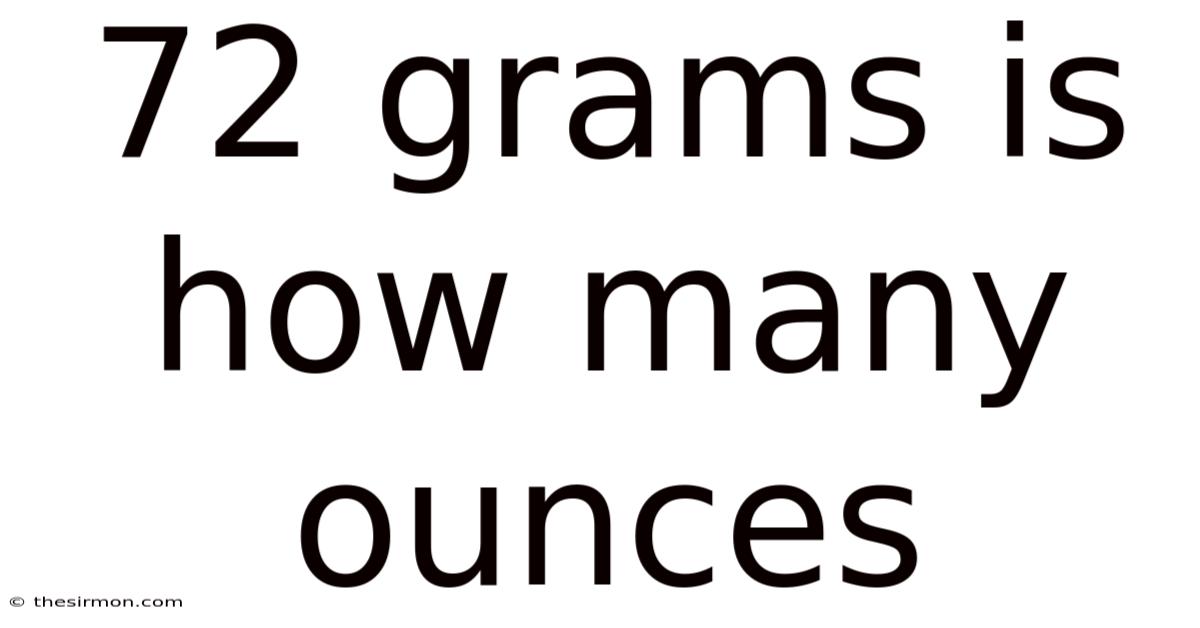 So 72 grams is approximately 2.54 ounces (rounded to two decimal places). Most everyday contexts will accept 2.5 oz as a practical approximation.