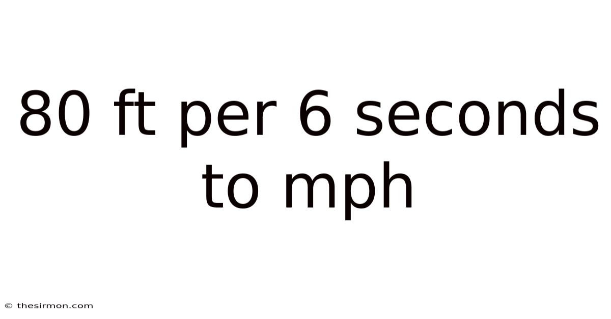 Speed is a fundamental concept in physics, engineering, and everyday life, often measured in units like miles per hour (mph) or feet per second (ft/s). Here's the thing — converting between these units is essential for comparing speeds across different contexts, such as sports, transportation, or scientific research. One common conversion involves calculating how fast an object travels 80 feet in 6 seconds and expressing that speed in miles per hour (mph). This article will break down the process, explain the math, and highlight its real-world significance.