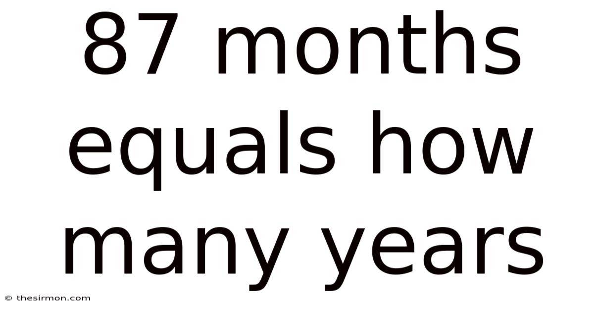 Q: Is 87 months exactly 7 years? A: No, 87 months is 7 years and 3 months, since 7 x 12 = 84, and 87 - 84 = 3.