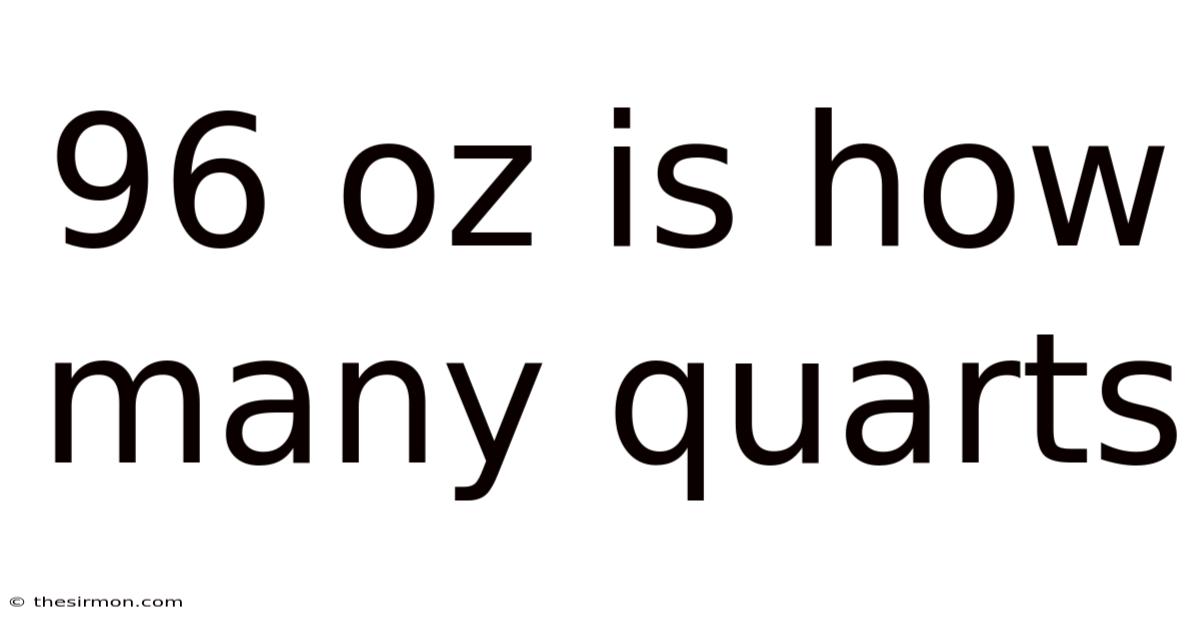 96 oz is how many quarts? This seemingly simple question touches on a fundamental skill in everyday life: converting between units of volume. Whether you're following a recipe, mixing a chemical solution, or tracking your daily water intake, understanding how ounces relate to quarts is essential. The direct answer is that 96 fluid ounces equals exactly 3 US quarts. Still, mastering this conversion provides a gateway to confidently navigating the imperial system of measurement, which is still widely used in the United States for cooking, automotive fluids, and many household tasks. This article will break down the calculation, explore the underlying system, and highlight why this knowledge is so practically valuable It's one of those things that adds up..
