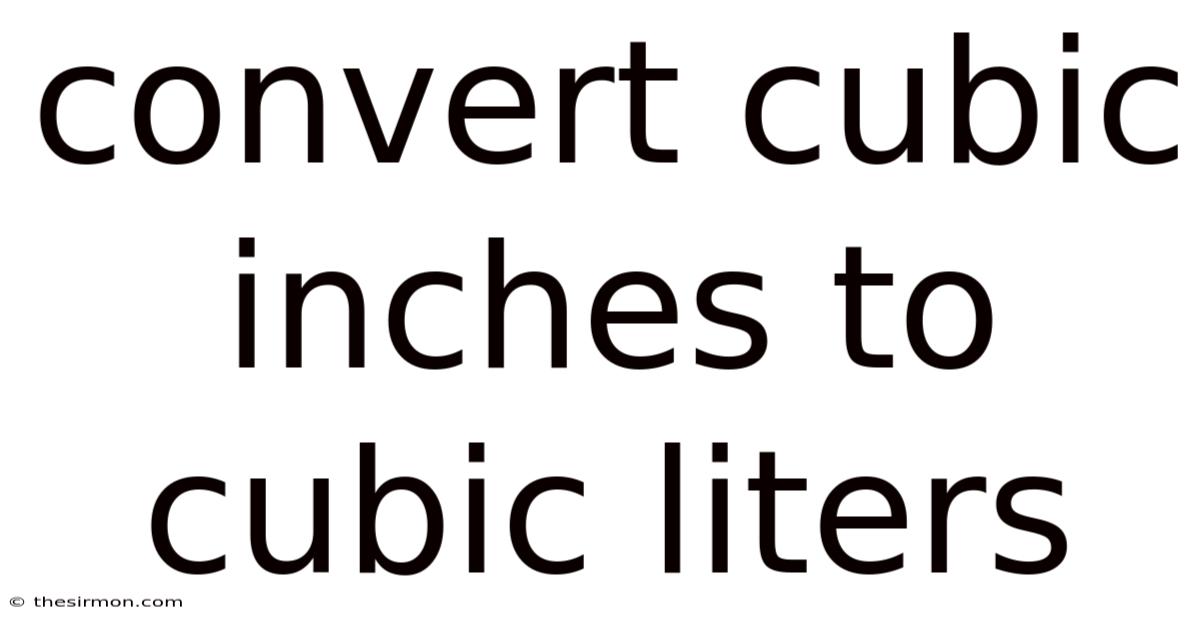 1 cubic inch = (2.54 cm)³ = 16.387064 cm³ A liter is defined as 1,000 cubic centimeters. Because of this, to convert cubic inches to cubic liters, you divide the number of cubic centimeters by 1,000: