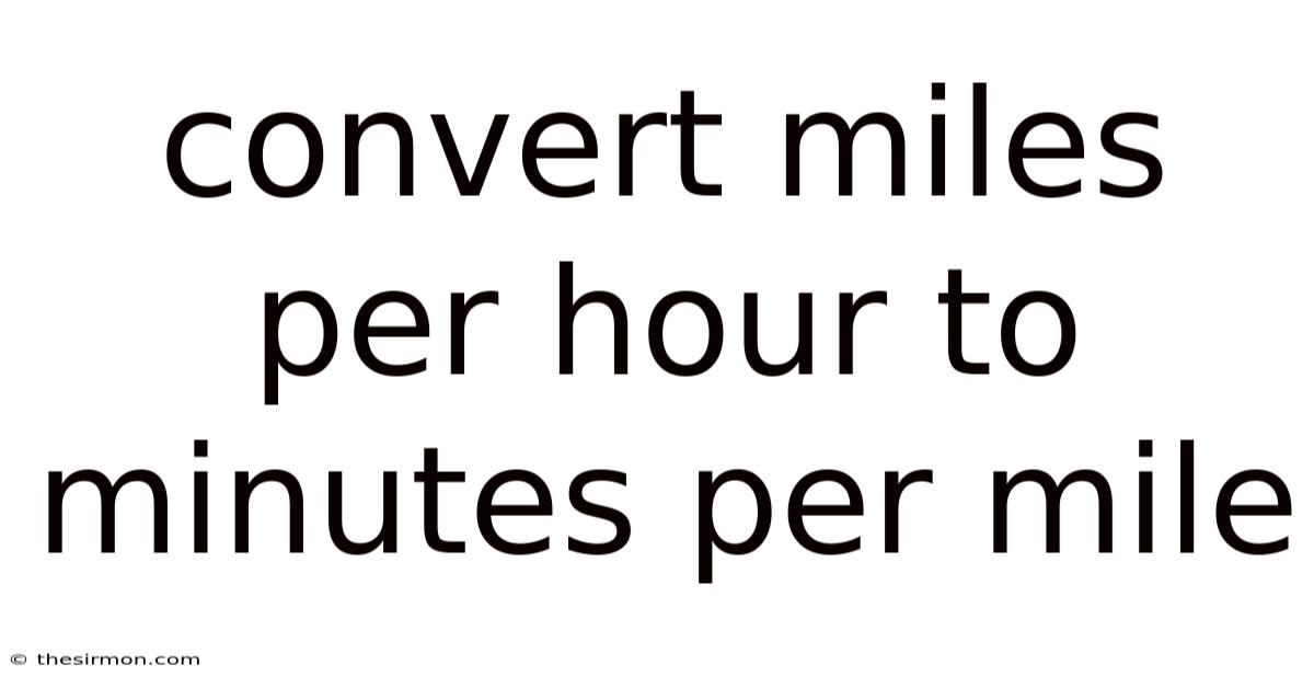 Understanding how to convert miles per hour (mph) to minutes per mile (min/mile) is a practical skill for runners, cyclists, and anyone tracking their pace. On the flip side, whether you’re training for a marathon, monitoring your daily commute, or simply curious about speed and time relationships, this conversion bridges the gap between speed (distance over time) and pace (time over distance). In this article, we’ll break down the formula, provide real-world examples, and explain why this conversion matters in fitness, sports, and everyday life Small thing, real impact..