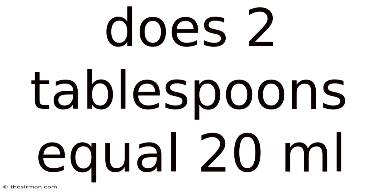 The seemingly simple question of whether 2 tablespoons equal 20 ml reveals a surprisingly complex landscape of measurement variations and potential pitfalls. While tablespoons are convenient for everyday cooking, their inherent ambiguity necessitates caution, particularly when precision is critical. In practice, understanding the different types of tablespoons, utilizing reliable conversion tools, and prioritizing weight or volume measurements whenever possible are essential steps towards accurate and consistent results. When all is said and done, embracing a mindful approach to measurement—one that acknowledges the nuances of different systems and tools—is the key to avoiding errors and achieving success, whether you're in the kitchen, the lab, or crafting your next masterpiece Surprisingly effective..