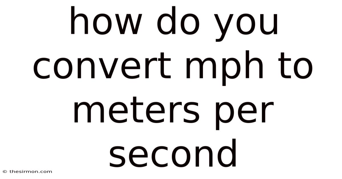 Converting miles per hour to meters per second is a routine calculation that appears in physics problems, engineering analyses, and sports performance reviews. When you need to convert mph to meters per second, understanding the underlying relationship between these units allows you to translate everyday speed figures into the metric system used by most scientific contexts. This article walks you through the logic, the exact formula, practical examples, and common pitfalls, giving you a reliable reference you can keep on hand for any speed‑conversion task.