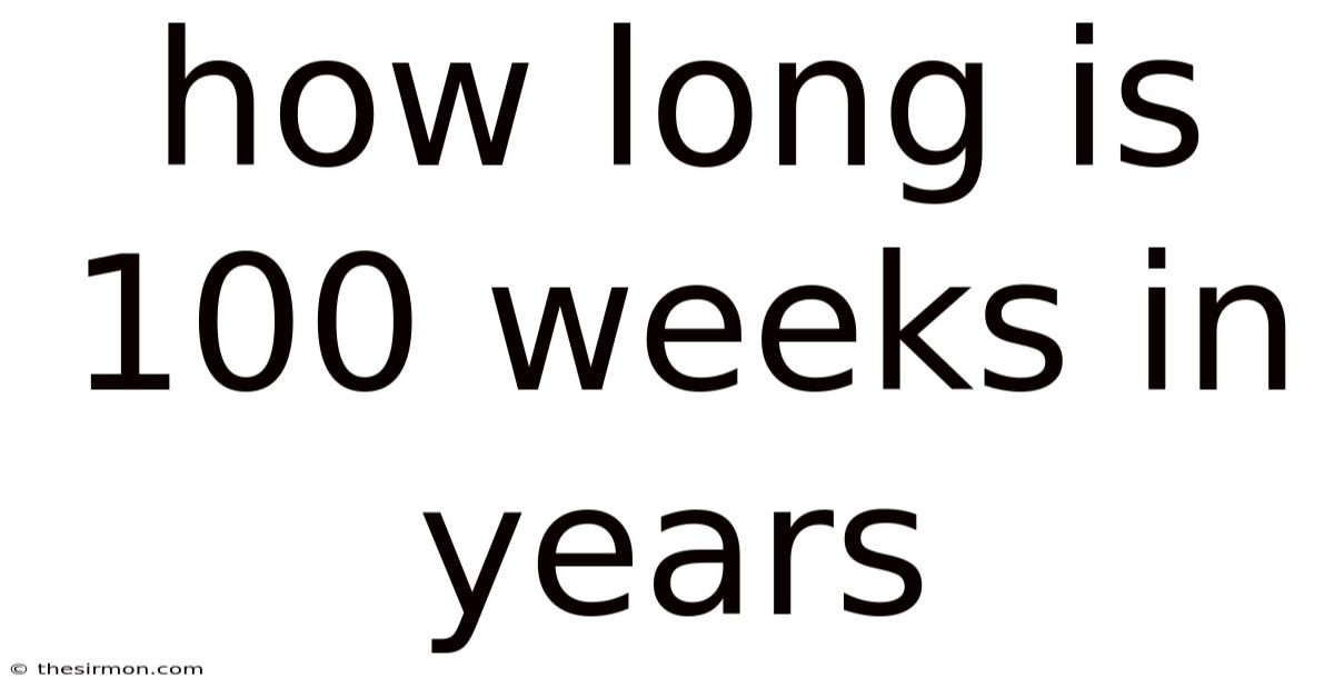 Understandinghow long is 100 weeks in years is a practical question that pops up in many everyday situations, from planning a semester-long project to estimating the duration of a fitness regimen. This article breaks down the conversion step by step, explains the underlying math, and answers common questions so you can confidently interpret time spans measured in weeks and translate them into years Small thing, real impact..