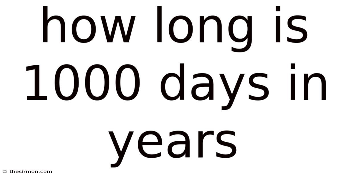 Performing this division gives us a result that is both precise and meaningful. On top of that, when we calculate it, we find that 1000 days equals approximately 2. 74 years. Basically, if you count 1000 days, you will have completed about two and a third years. This conversion helps us understand how time accumulates over longer periods Small thing, real impact..