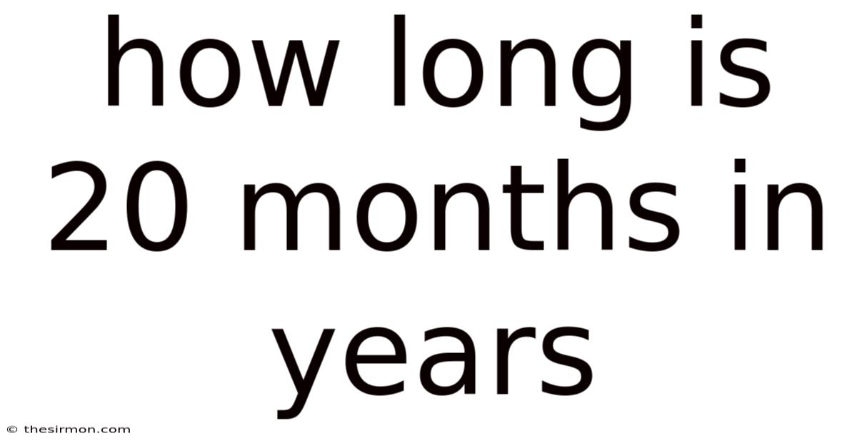 How long is 20 months in years is a question that often pops up when planning projects, tracking milestones, or simply trying to make sense of time spans expressed in months. The answer is straightforward: 20 months equals 1 year and 8 months. Yet, understanding why this conversion works and how it applies to everyday scenarios can deepen your grasp of temporal measurements and help you communicate more precisely. This article walks you through the conversion process, explains the underlying concepts, and answers the most frequently asked questions, all while keeping the explanation clear and engaging Easy to understand, harder to ignore..