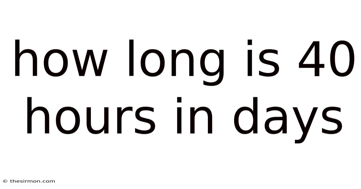The seemingly simple question of “how many days are in 40 hours?” opens a gateway to a richer exploration of time measurement, contextual interpretation, and practical application. Which means through careful attention to calculation fundamentals, awareness of contextual variables, and strategic use of visual and analytical tools, individuals can transform a basic conversion into a powerful component of effective planning and decision‑making. In the long run, mastering this conversion exemplifies a broader skill: the ability to translate precise numerical relationships into meaningful, actionable insights that respect both mathematical truth and human reality.