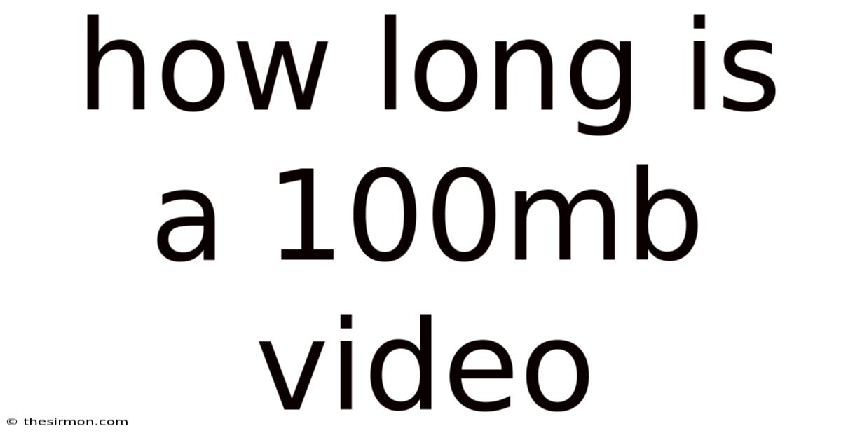 When someone asks, “How long is a 100MB video?Because of that, file size alone doesn’t determine video length. Which means to estimate the length of a 100MB video, you need to consider these variables and how they interact. Consider this: ”, the answer isn’t straightforward. Practically speaking, instead, a video’s duration depends on factors like resolution, bitrate, codec, and compression. This article breaks down the science behind video file sizes, provides practical examples, and explains why the same 100MB file can represent drastically different lengths of footage Took long enough..