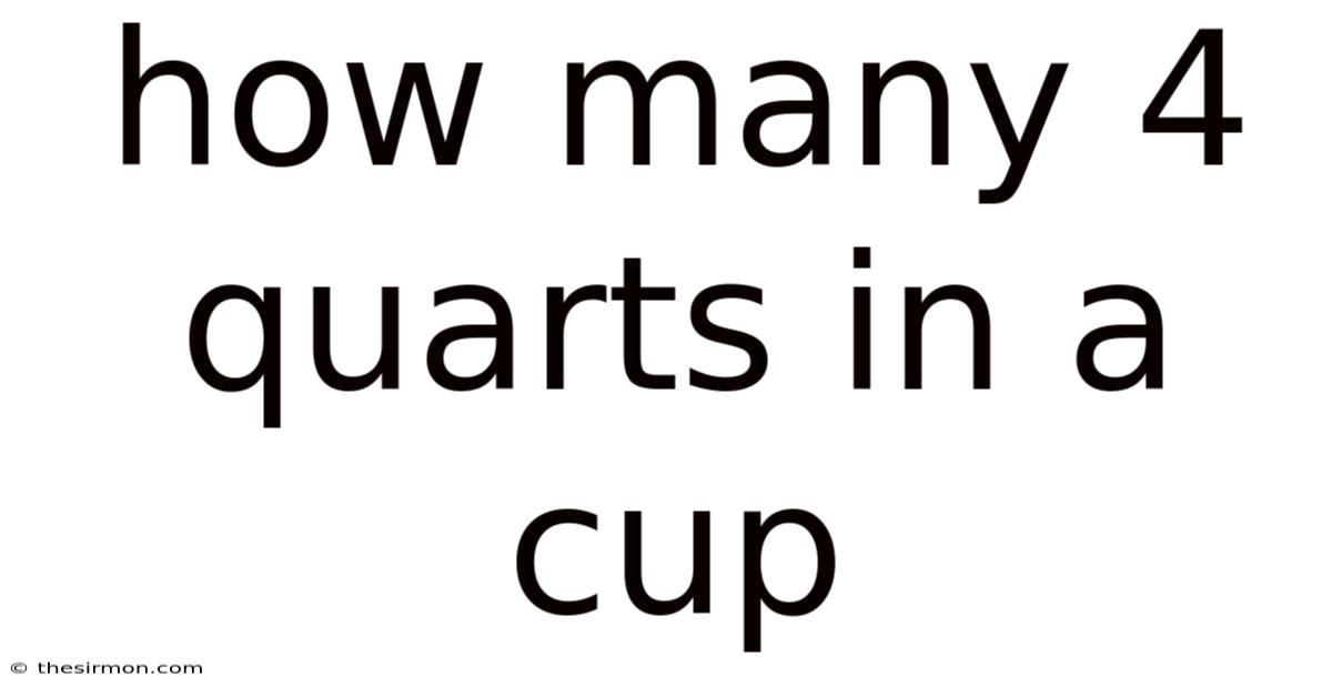 When you’re measuring liquids for a recipe, a science experiment, or a DIY project, the question “how many 4 quarts in a cup?While the answer is straightforward—one cup equals 0.Which means 25 quart, so four quarts equal 16 cups—the path to that simple conversion often involves a mix of historical measurement systems, kitchen shortcuts, and practical tips for accuracy. And ” can quickly turn into a source of confusion. This guide breaks down the math, explains why the relationship matters, and equips you with tools to convert any volume quickly and confidently.