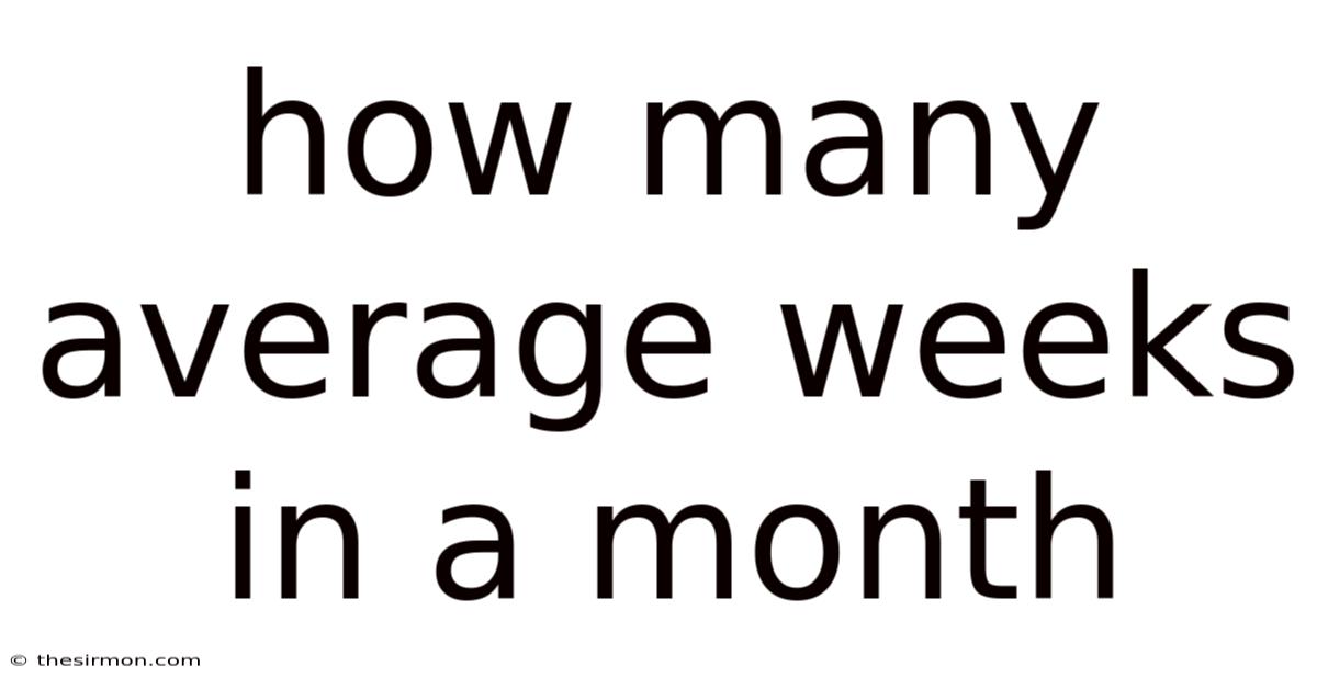 When accounting for a leap year (366 days), the average becomes 366 ÷ 7 ÷ 12 ≈ 4.Still, this figure is not something you will find on a wall calendar, as no single month has 0. Here's the thing — 357 weeks. Plus, 345 weeks) is the accepted annual average**. But 3 weeks (or more precisely, 4. Practically speaking, 3 of a week. Which means, for general purposes, **4.Instead, it is a statistical mean that helps in long-term planning and analysis.