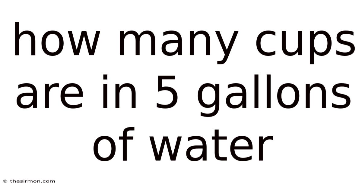 Basically, there are 80 cups in 5 gallons of water. This conversion is essential in many practical scenarios, such as cooking recipes that require precise measurements. To give you an idea, if a recipe calls for 2 cups of water and you need to adjust the amount based on the volume of your container, understanding this conversion helps you make accurate adjustments Simple, but easy to overlook..