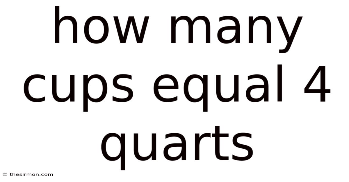 [ 4 \text{ quarts} \times 4 \text{ cups/quart} = 16 \text{ cups} ] - Result: 4 quarts is equivalent to 16 cups.